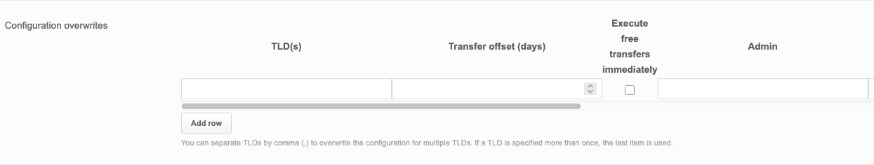 This option can be used to overwrite the DTS defaults configured above. This comes in particularly handy when a TLD mandates certain requirements forr admin/billing/tech contacts. For example you can provide an Admin Billig and Tech contact that is a natural person with contact properties added for .ES to use as admin billing and tech contact for all .ES transfers requested through the DTS. This will prevent any 'Admin/Billing/Tech contact should be a natural person error messages when the DTS preps .ES transfers.
