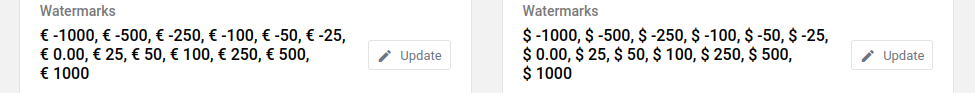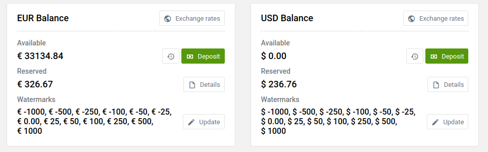 - Your account Watermarks are displayed in the balance tile. Watermarks are threshold indicators that help you track the development of your account balance. For a detailed description on setting watermarks and the relevant notification rules, See the ➤ Watermarks KB-article.