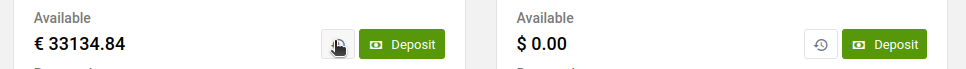 By default, only one currency is available to deposit into your account balance. For example purposes in the images below, both USD and EUR balances are shown.