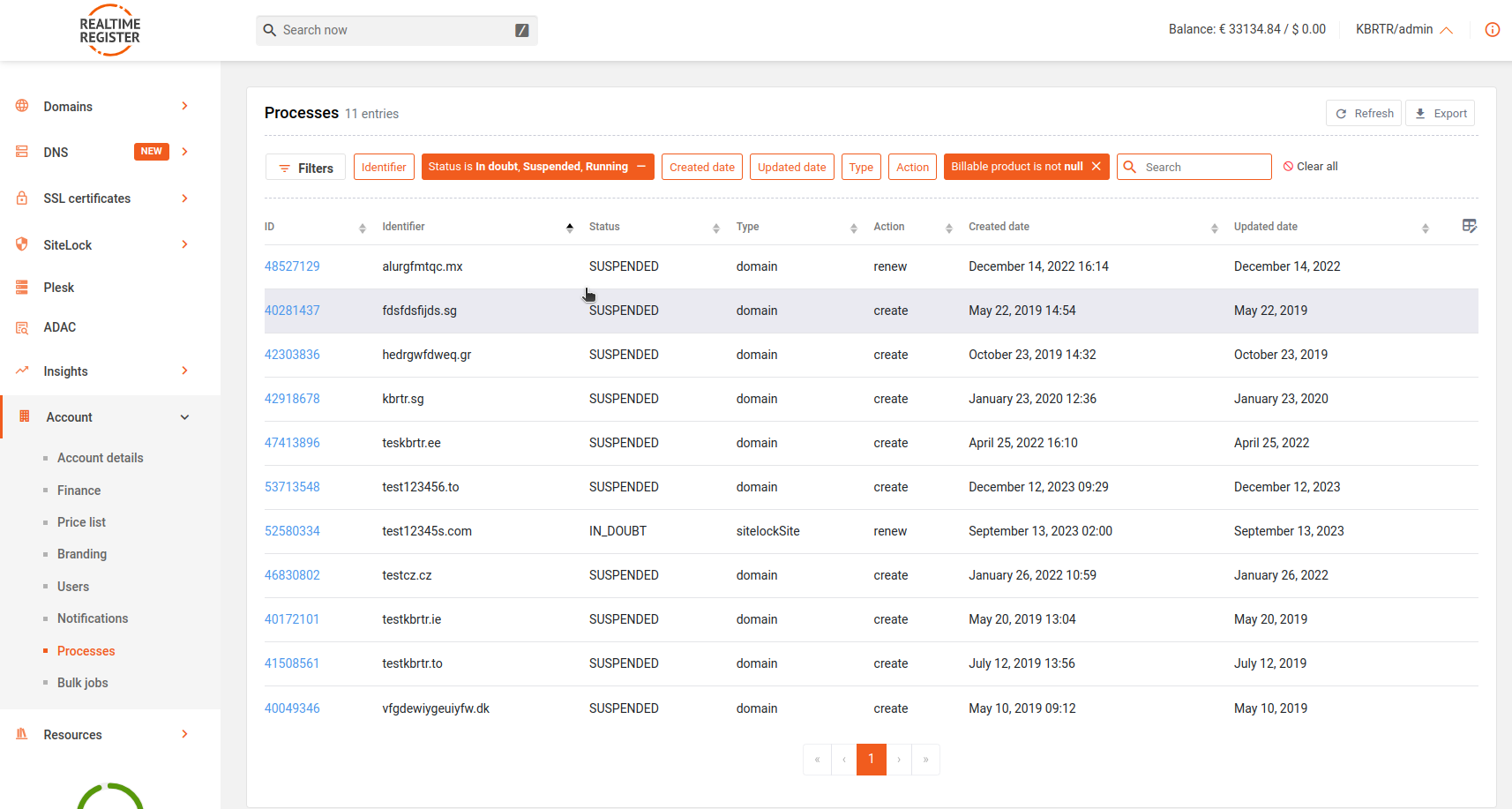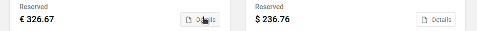 - The reserved balance shows funds that are reserved for pending transactions in your Realtime Register account. For a detailed description on the functionality of the reserved balance, See the ➤ Reserved balance KB-article.