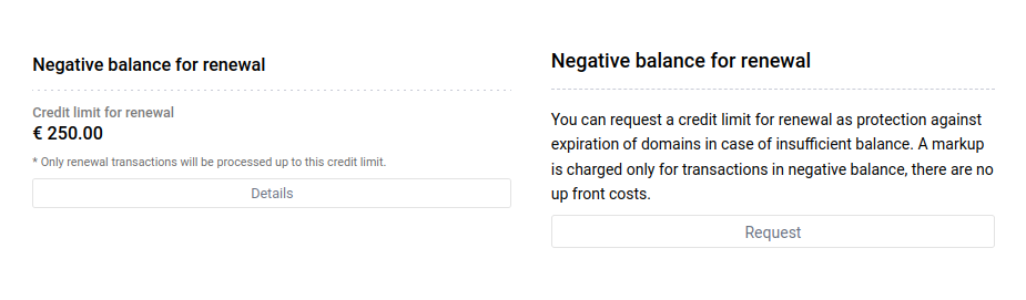 - For a detailed description on requesting or managing a negative balance, See the ➤ Request/review negative balance KB-article.