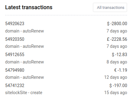 The latest transactions tile provides insight into the most recent transactions in your account.
