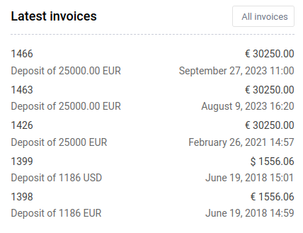 The latest invoices tile provides insight into the most recent invoices in your account.