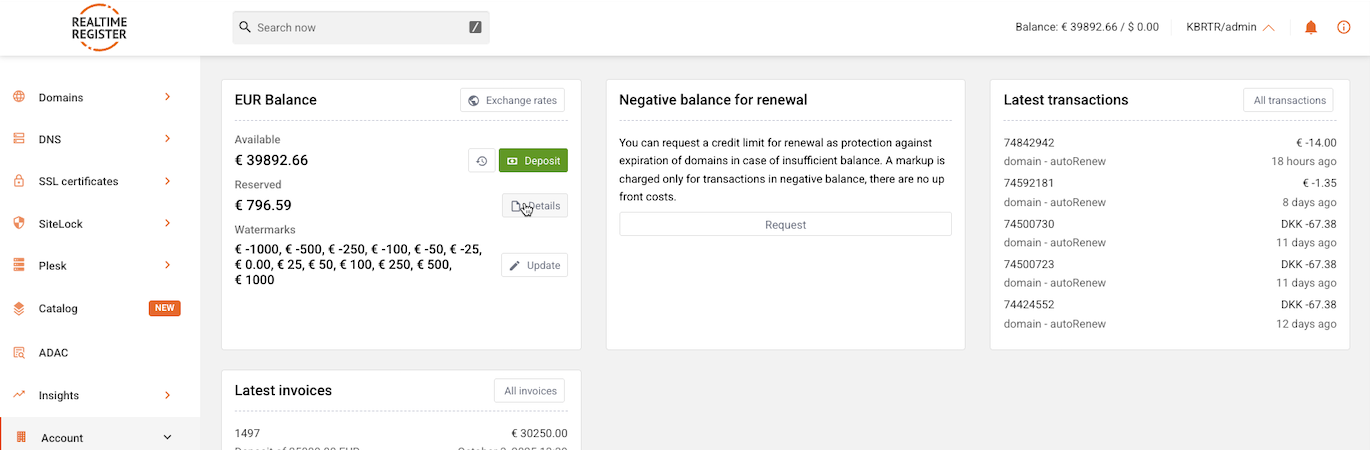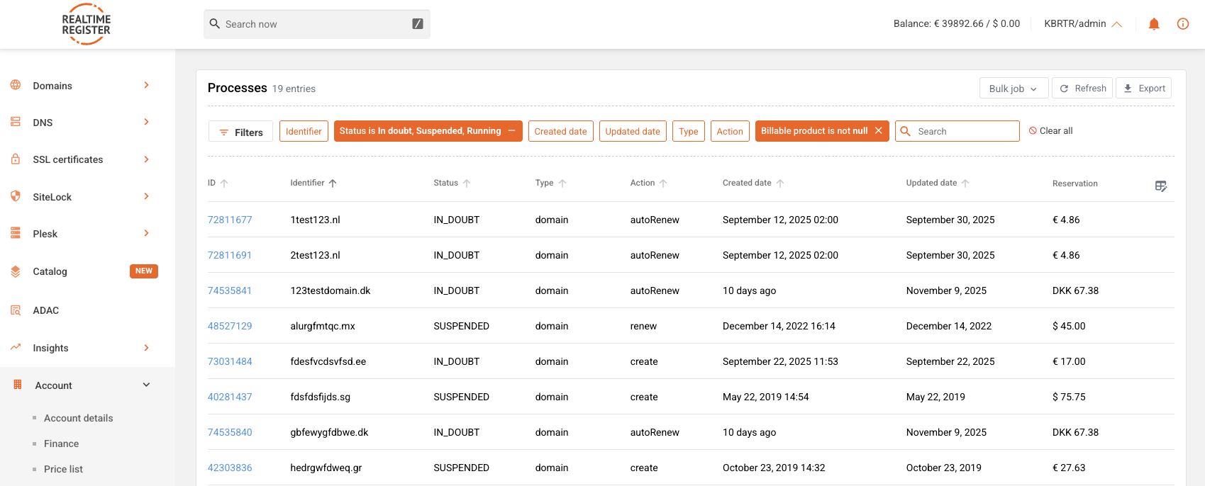 To check the reserved account balance for suspended chargeable processes in your account, follow the steps below.