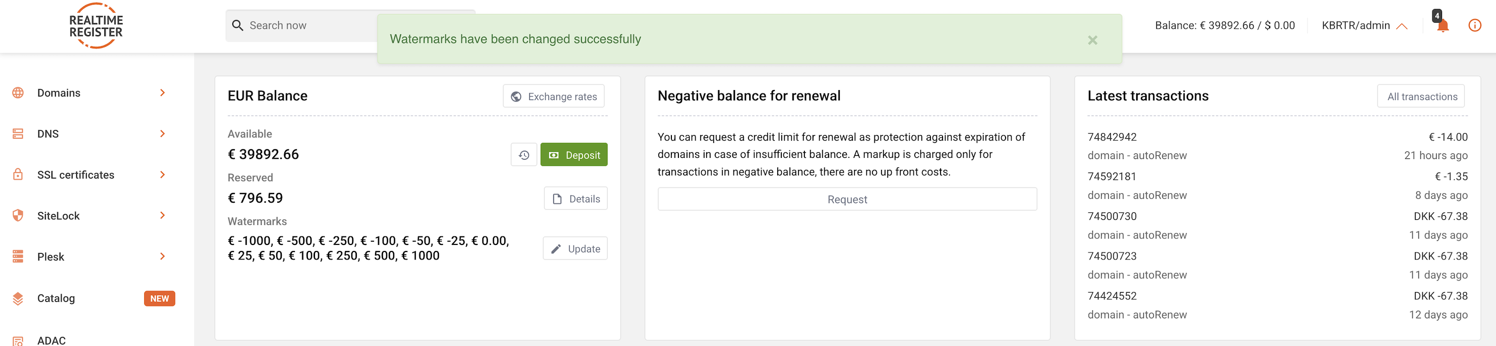 To check and adjust watermark levels in your account on which to receive watermark notifications, follow the steps below.