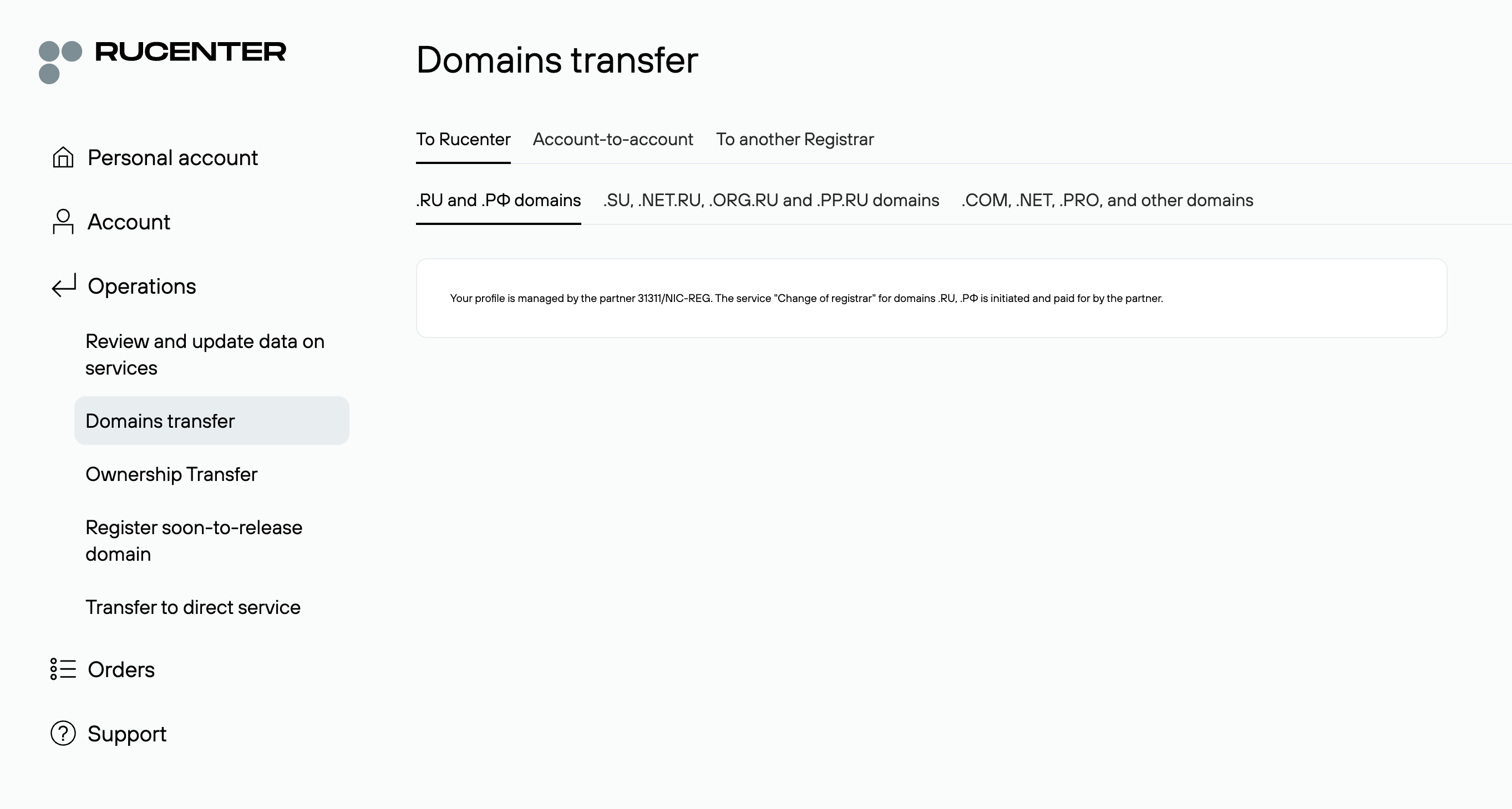 🔁 Transfer in from other registrars than RU-Center