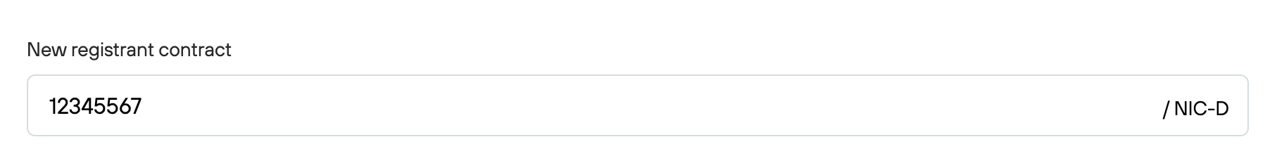 - In the New registrant contact field, enter the receiving NIC-D account number you received from our support team.