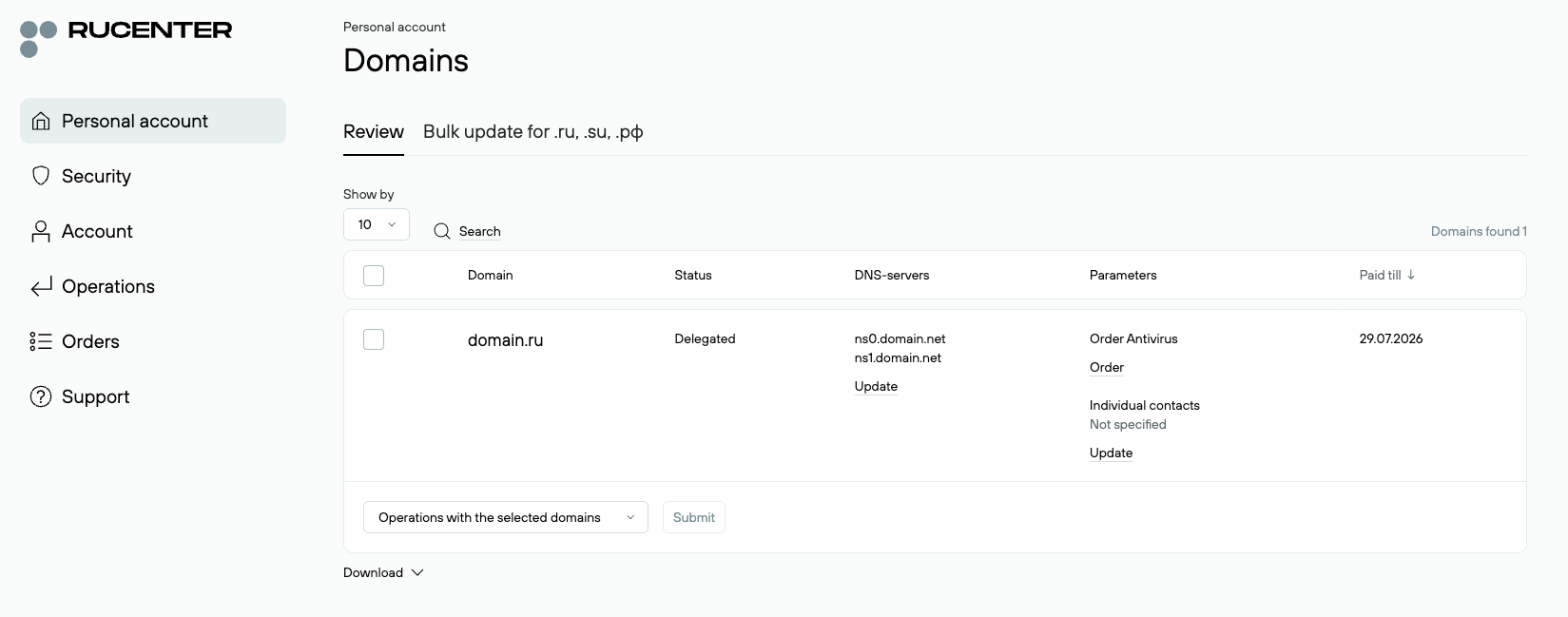 📤 Transfer out Legacy .RU domains