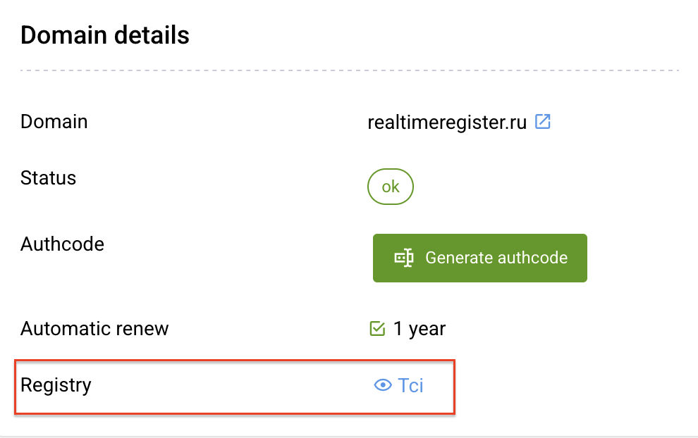 You can recognise a legacy .RU domain in our portal by the TCI reference on the domain detail page as shown in the example below.