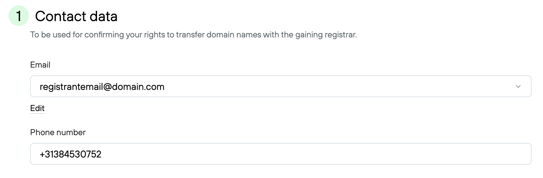 ℹ️ If you already have an existing registrant contact that you want to use, you can skip this step and continue with step 2.